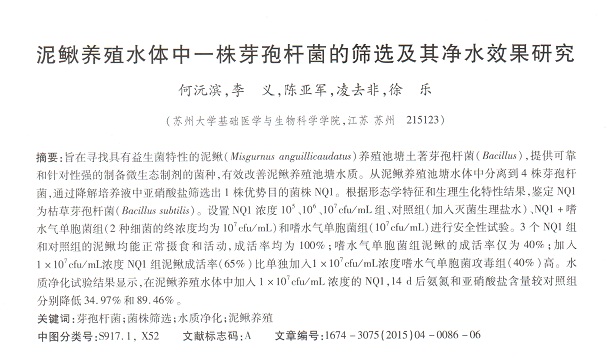 泥鰍養(yǎng)殖水體中一株芽孢桿菌的篩選及其凈水效果研究