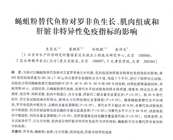 蠅蛆粉替代魚粉對羅非魚生長、肌肉組成和肝臟非特異性免疫指標(biāo)的影響