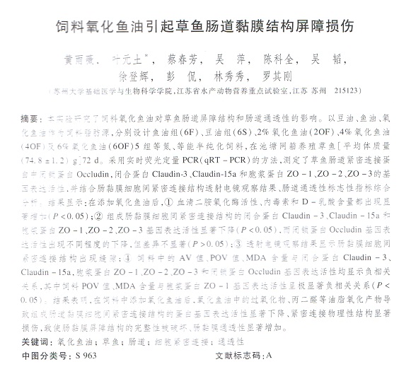 飼料氧化魚油引起草魚腸道黏膜結(jié)構(gòu)屏障損傷