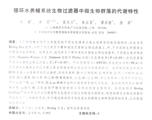 循環(huán)水養(yǎng)鰻系統(tǒng)生物過濾器中微生物群落的代謝特性