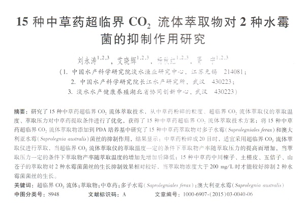 15種中草藥超臨界CO2流體萃取物對(duì)2種水霉菌的抑制作用研究