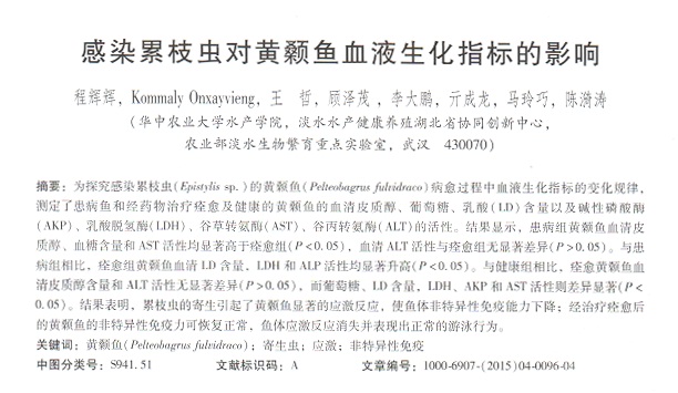 感染累枝蟲(chóng)對(duì)黃顙魚(yú)血液生化指標(biāo)的影響
