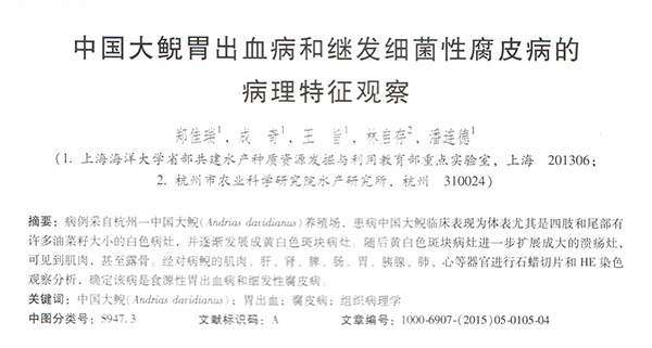 中國(guó)大鯢胃出血病和繼發(fā)細(xì)菌性腐皮病的病理特征觀察