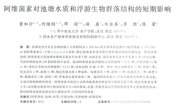 阿維菌素對(duì)池塘水質(zhì)和浮游生物群落結(jié)構(gòu)的短期影響