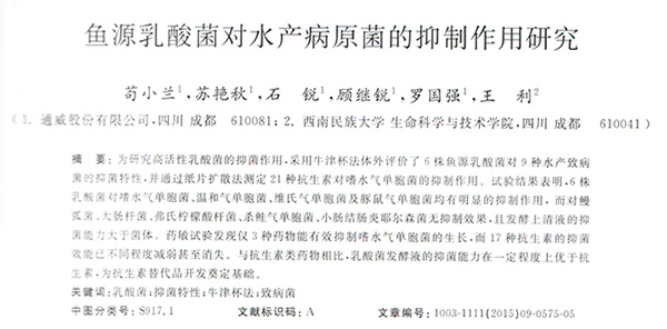 魚源乳酸菌對水產(chǎn)病原菌的抑制作用研究