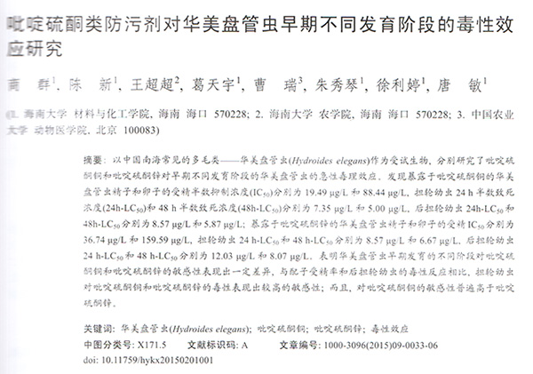 吡啶硫酮類防污劑對華美盤管蟲早期不同發(fā)育階段的毒性效應(yīng)研究