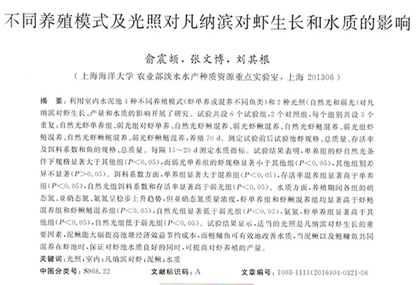 不同養(yǎng)殖模式及光照對凡納濱對蝦生長和水質(zhì)的影響