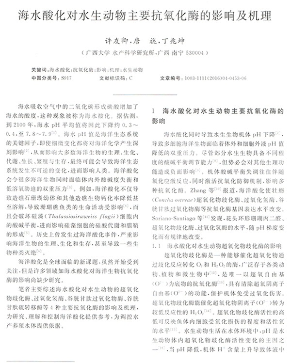 海水酸化對水生動物主要抗氧化酶的影響及機理