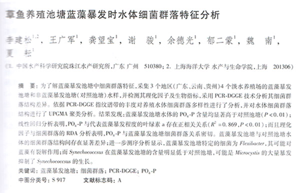 草魚養(yǎng)殖池塘藍藻暴發(fā)時水體細菌群落特征分析