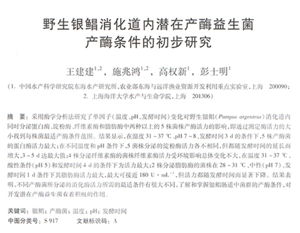 野生銀鯧消化道內(nèi)潛在產(chǎn)酶益生菌產(chǎn)酶條件的初步研究