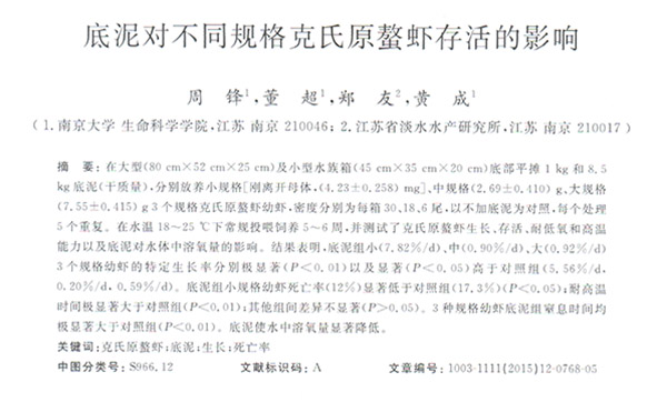 底泥對(duì)不同規(guī)格克氏原螯蝦存活的影響