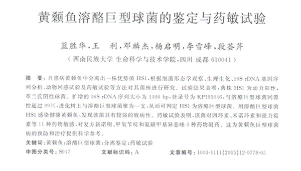 黃顙魚溶酪巨型球菌的鑒定與藥敏試驗