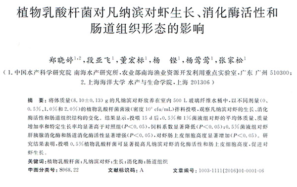 植物乳酸桿菌對凡納濱對蝦生長、消化酶活性和腸道組織形態(tài)的影響
