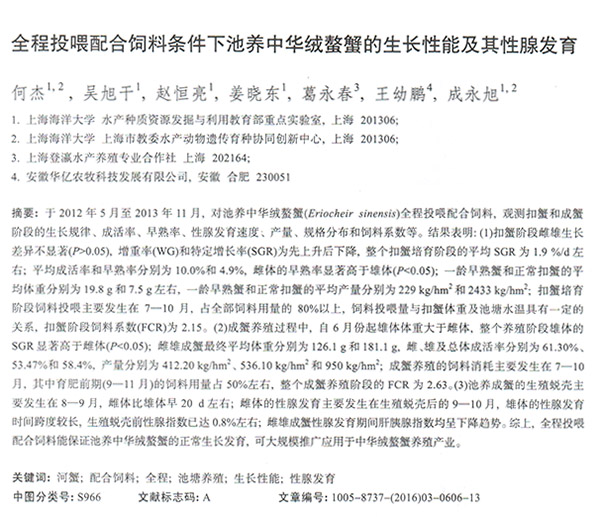 全程投喂配合飼料條件下池養(yǎng)中華絨螯蟹的生長性能及其性腺發(fā)育