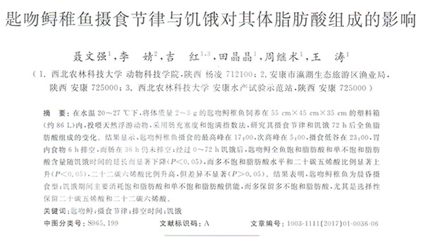 匙吻鱘稚魚攝食節(jié)律與饑餓對其體脂肪組成的影響