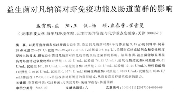 益生菌對凡納濱對蝦免疫功能及腸道菌群的影響