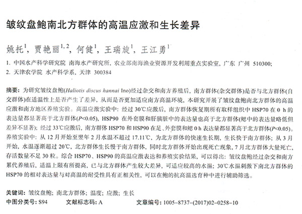 皺紋盤鮑南北方群體的高溫應(yīng)激和生長差異
