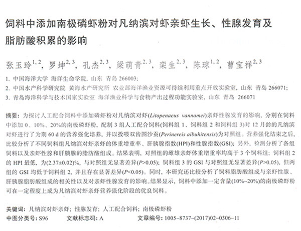 飼料中添加南極磷蝦粉對凡納濱對蝦親蝦生長、性腺發(fā)育及脂肪酸積累的影響