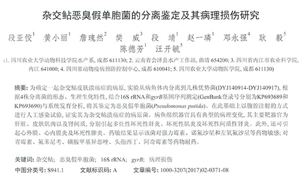 雜交鲇惡臭假單胞菌的分離鑒定及其病理?yè)p傷研究