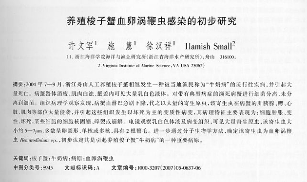 養(yǎng)殖梭子蟹血卵渦鞭蟲感染的初步研究