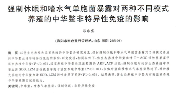 強(qiáng)制休眠和嗜水氣單胞菌暴露對(duì)兩種不同模式養(yǎng)殖的中華鱉非特異性免疫的影響