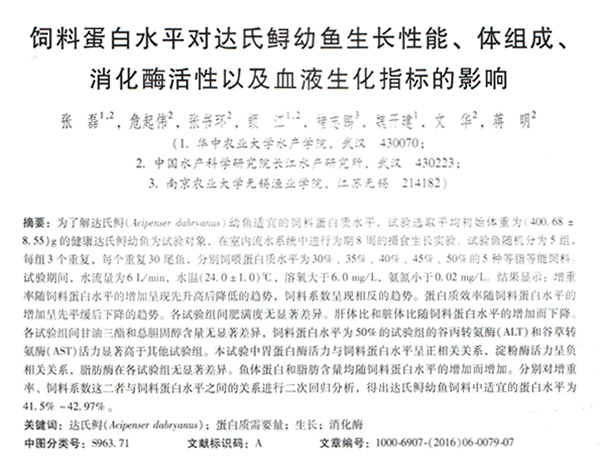 飼料蛋白水平對(duì)達(dá)氏鱘幼魚生長(zhǎng)性能、體組成、消化酶活性以及血液生化指標(biāo)的影響
