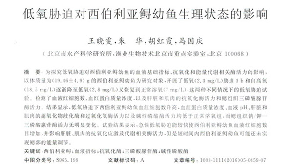 低氧脅迫對(duì)西伯利亞鱘幼魚生理狀態(tài)的影響