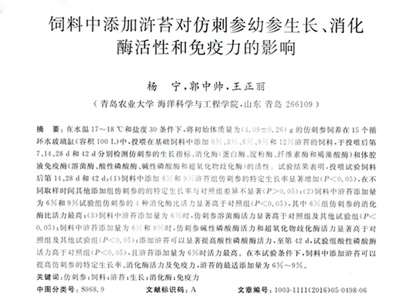 飼料中添加滸苔對(duì)仿刺參幼參生長(zhǎng)、消化酶活性和免疫力的影響