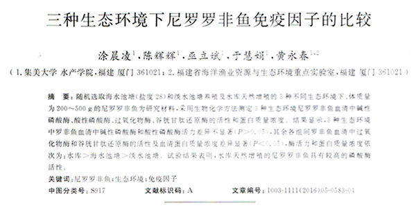 三種生態(tài)環(huán)境下尼羅羅非魚免疫因子的比較