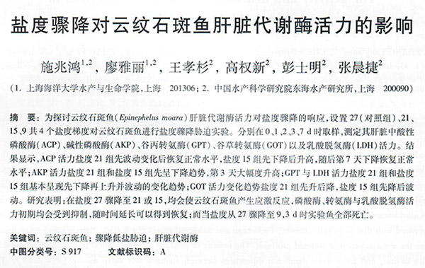 鹽度驟降對(duì)云紋石斑魚(yú)肝臟代謝酶活力的影響