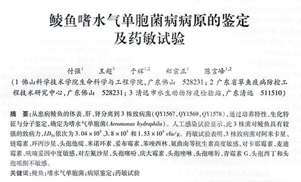 鯪魚(yú)嗜水氣單胞菌病病原的鑒定及藥敏試驗(yàn)