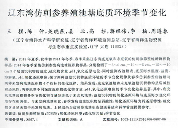 遼東灣仿剌參養(yǎng)殖池塘底質(zhì)環(huán)境季節(jié)變化
