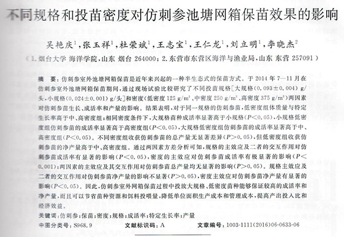 不同規(guī)格和投苗密度對(duì)仿剌參池塘網(wǎng)箱保苗效果的影響