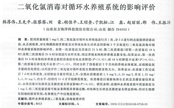二氧化氯消毒對(duì)循環(huán)水養(yǎng)殖系統(tǒng)的影響評(píng)價(jià)