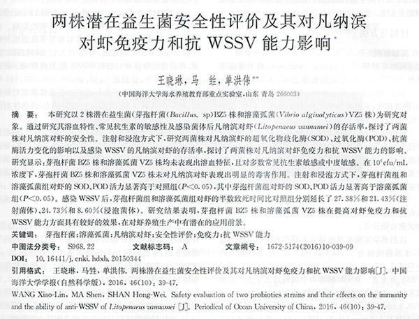 兩株潛在益生菌安全性評(píng)價(jià)及其對(duì)凡納濱對(duì)蝦免疫力和抗WSSV能力影響