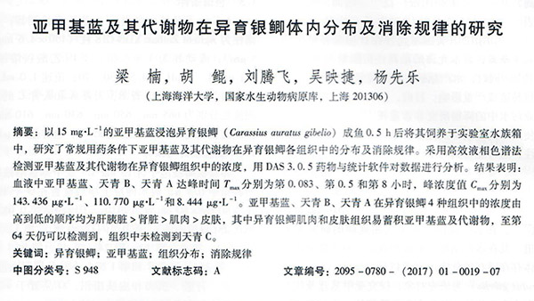 亞甲基藍(lán)及其代謝物在異育銀鯽體內(nèi)分布及消除規(guī)律的研究
