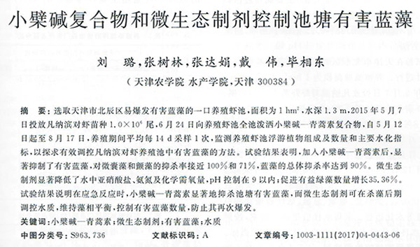 小檗堿復(fù)合物和微生態(tài)制劑控制池塘有害藍(lán)藻