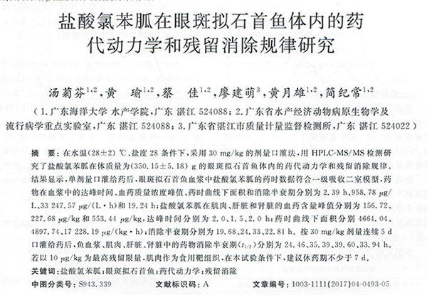 鹽酸氯苯胍在眼斑擬石首魚(yú)體內(nèi)的藥代動(dòng)力學(xué)和殘留消除規(guī)律研究