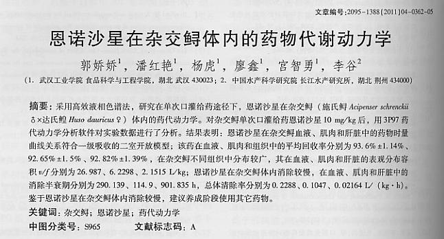 恩諾沙星在雜交鱘體內(nèi)的藥物代謝動(dòng)力學(xué)