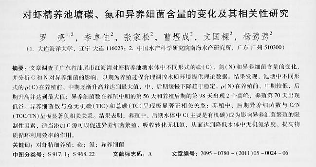 對蝦精養(yǎng)池塘碳、氮和異養(yǎng)細(xì)菌含量的變化及其相關(guān)性研究