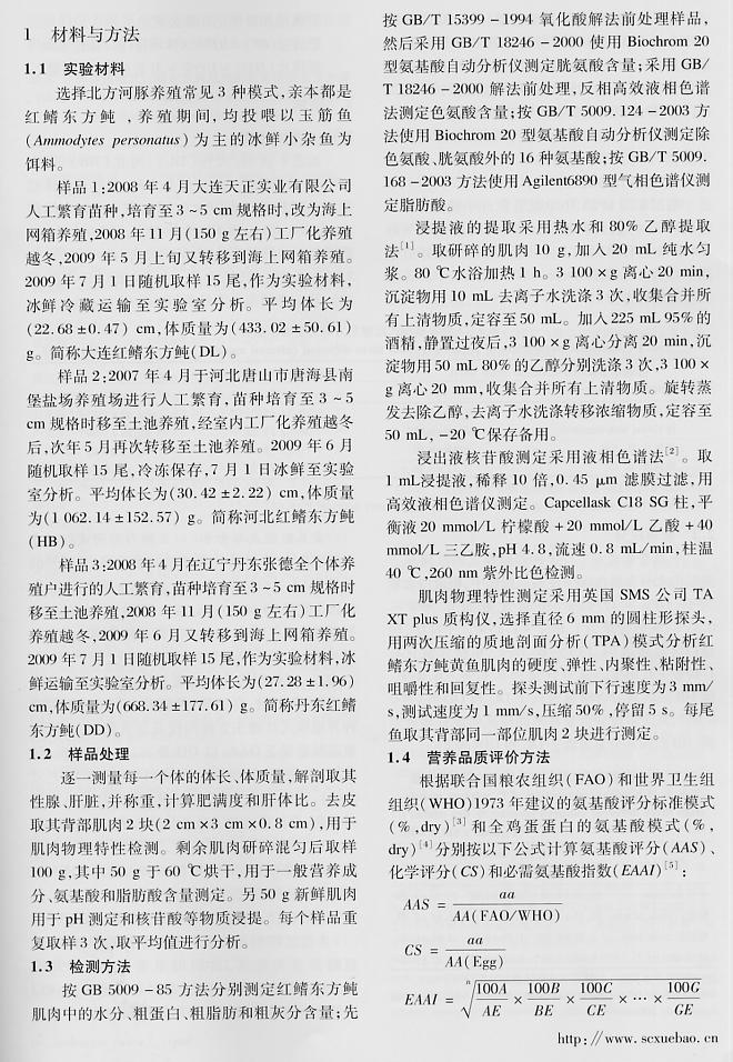 不同養(yǎng)殖模式下紅鰭東方鲀的品質(zhì)比較2