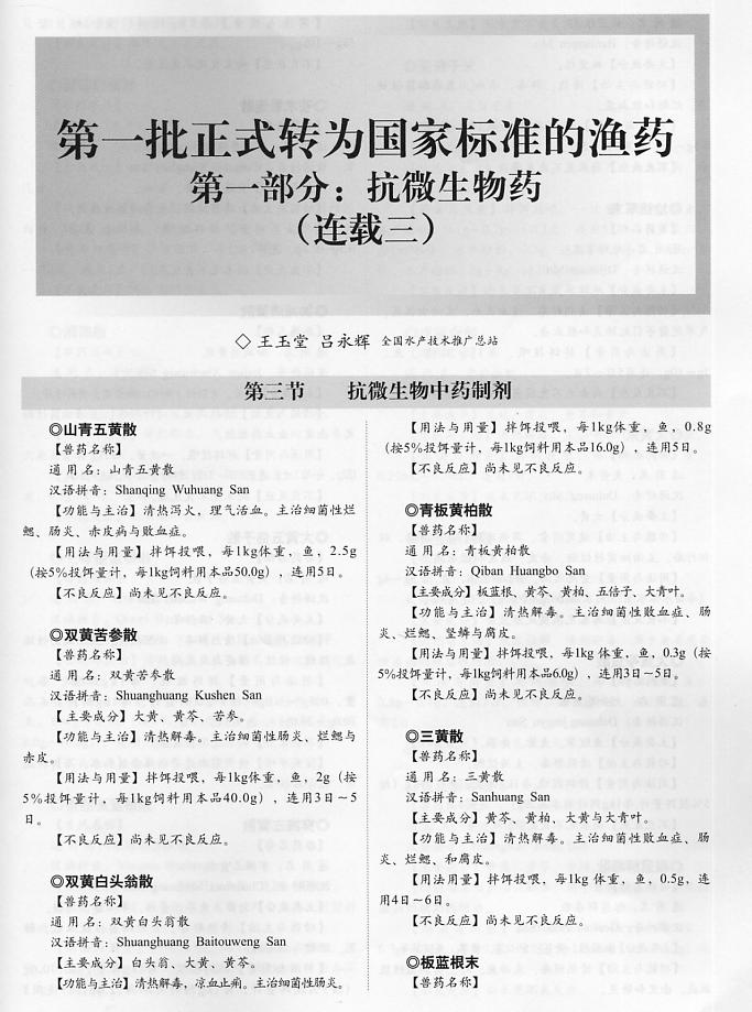第一批正式轉(zhuǎn)為國家標(biāo)準(zhǔn)的漁藥第一部分:抗微生物藥(連載三)1