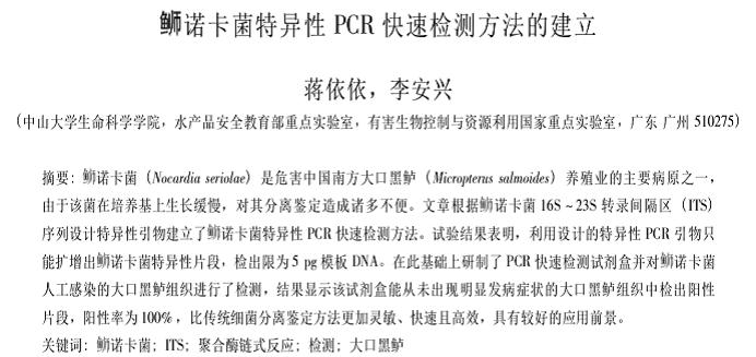 螄諾卡菌特異性PCR快速檢測方法的建立