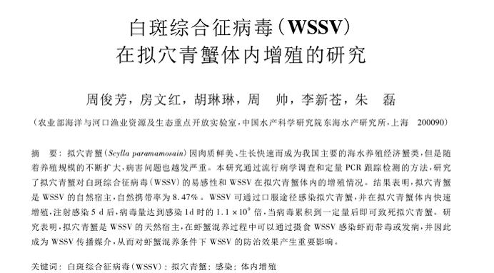 白斑綜合征病毒_WSSV_在擬穴青蟹體內(nèi)增殖的研究-海洋漁業(yè)