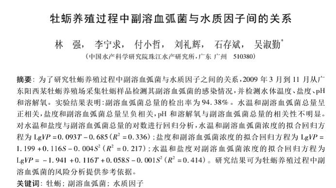 牡蠣養(yǎng)殖過(guò)程中副溶血弧菌與水質(zhì)因子間的關(guān)系