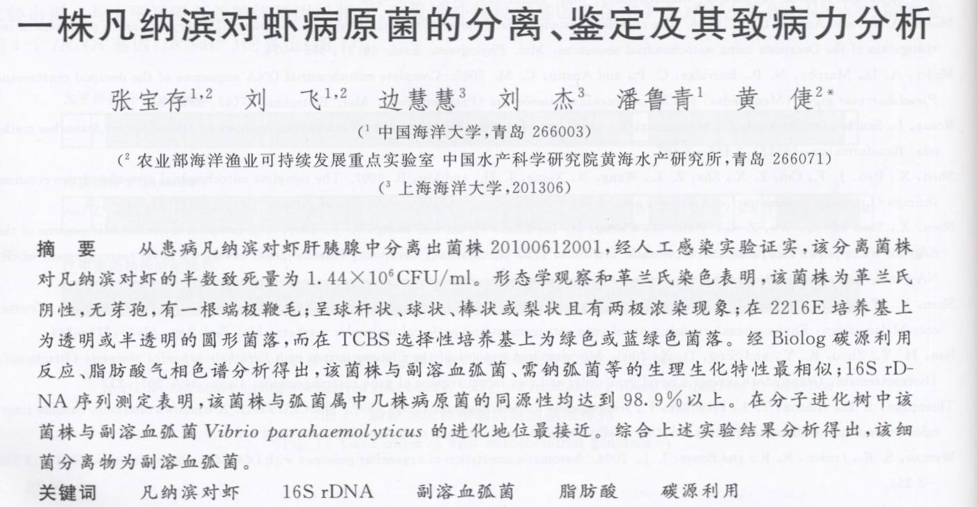 一株凡納繽對蝦病原菌的分離,鑒定及其致病力分析