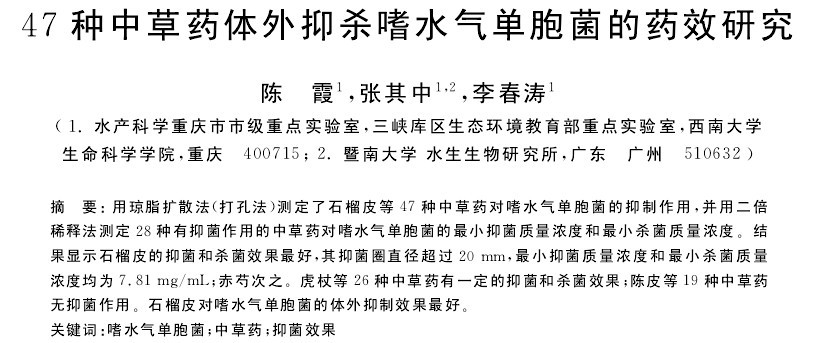 47種中草藥體外抑殺嗜水氣單胞菌的藥效研究
