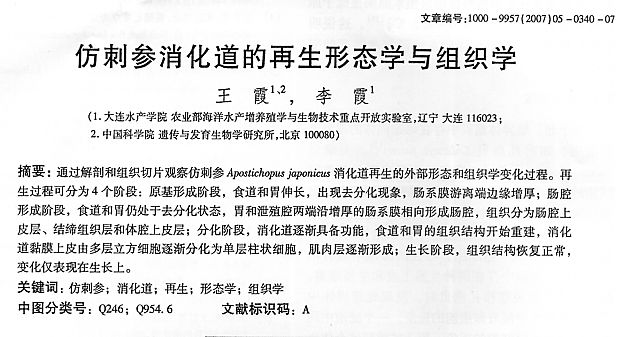 仿刺參消化道的再生形態(tài)學與組織學