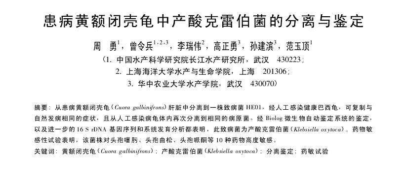 患病黃額閉殼龜中產(chǎn)酸克雷伯菌的分離與鑒定