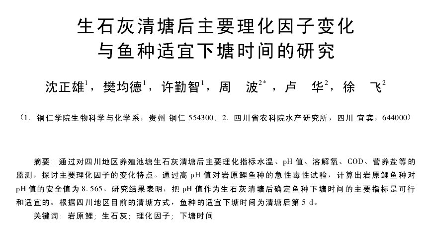 生石灰清塘后主要理化因子變化與魚種適宜下塘?xí)r間的研究